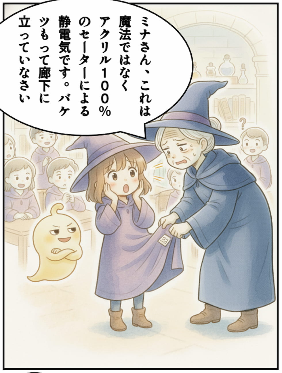 ミナさん、これは魔法ではなくアクリル100%のセーターによる静電気です。